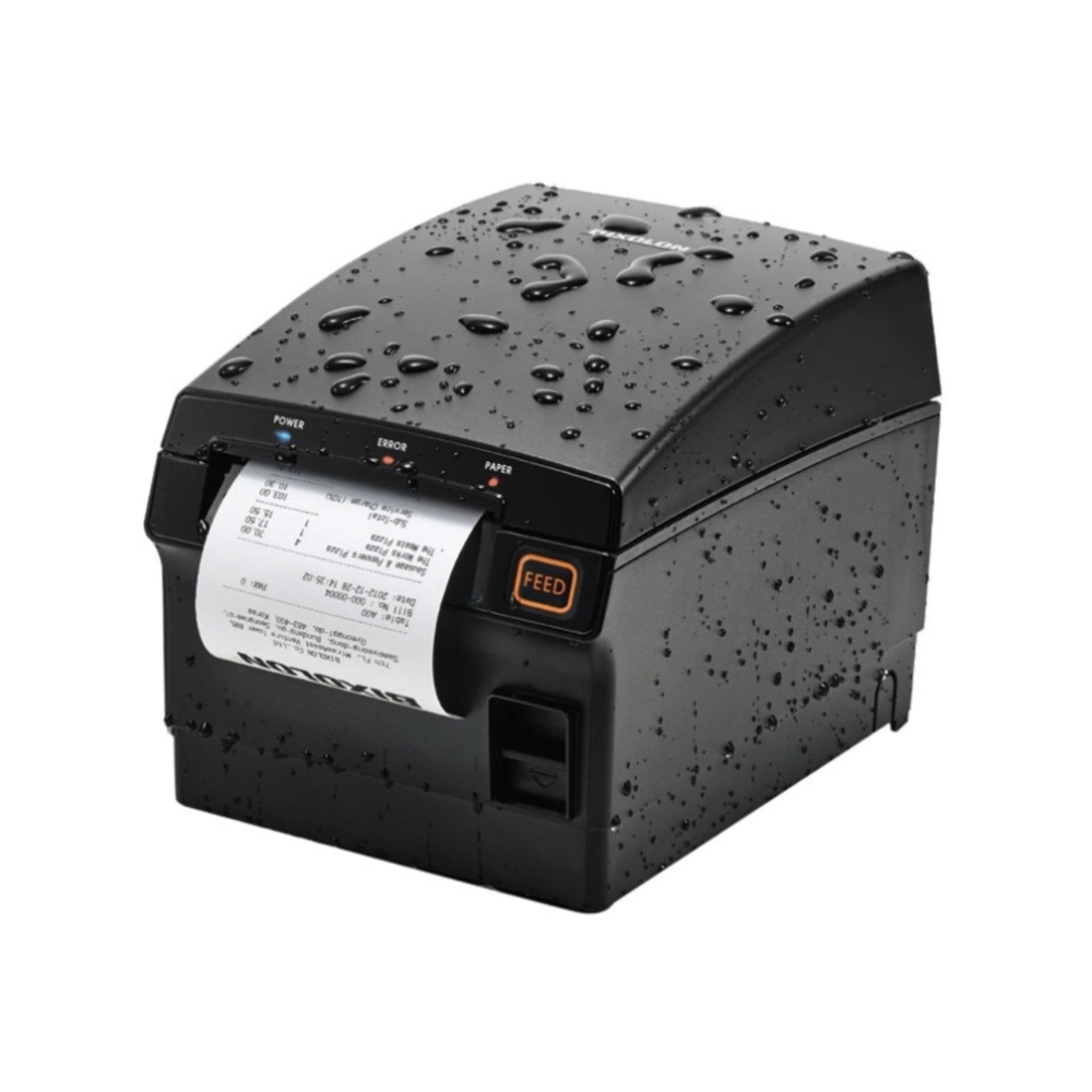 فیش پرینتر Bixolon SRP-F310II با بهرهگیری از فناوری "Liquid-Barrier™ طراحی شده است و دارای استاندارد IP12 میباشد، که آن را در برابر نفوذ جزئی مایعات و گرد و غبار مقاوم میکند. این ویژگی باعث میشود که دستگاه در محیطهای فروشگاهی، رستورانها و مراکز خدماتی که احتمال پاشش مایعات یا وجود گرد و غبار ، دارد عملکرد پایداری داشته باشد. با این حال، لازم است توجه شود که این پرینتر ضد آب کامل نیست و نباید در معرض تماس مستقیم با آب یا محیطهای خیلی مرطوب قرار گیرد. رعایت این نکات نگهداری، طول عمر دستگاه را افزایش داده و کیفیت چاپ فیشها و بارکدها را در طول زمان حفظ میکند، همچنین هزینههای تعمیر و نگهداری را کاهش میدهد.