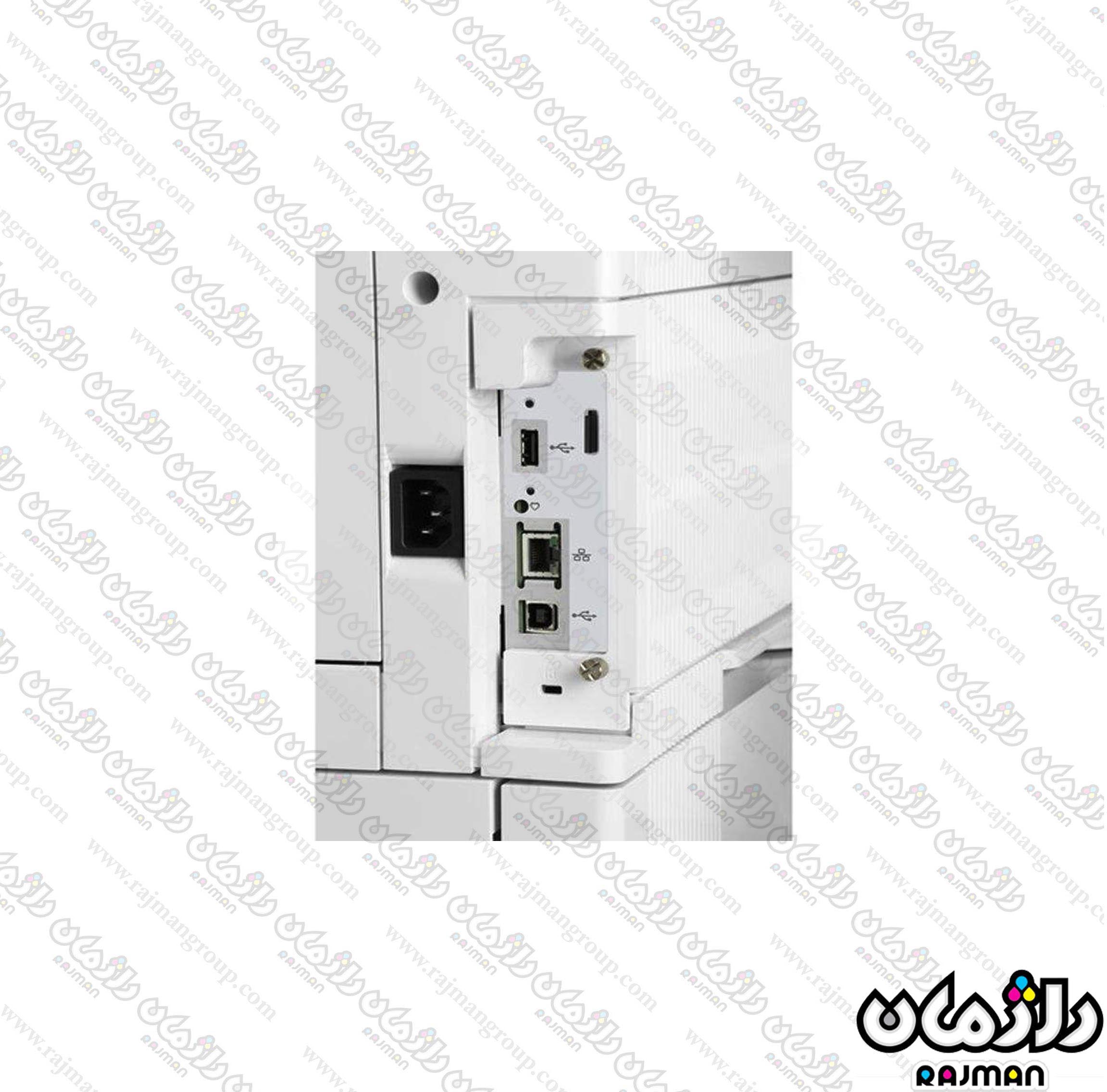 این پرینتر با داشتن پورتهای USB 2.0، Ethernet، و جیب سختافزاری (Hardware Integration Pocket) امکان اتصال و اشتراکگذاری آسان را فراهم میآورد. همچنین، قابلیت چاپ موبایل از طریق HP ePrint، Apple AirPrint™ نیز در این دستگاه وجود دارد که کاربران میتوانند به راحتی از طریق دستگاههای همراه خود چاپ کنند.